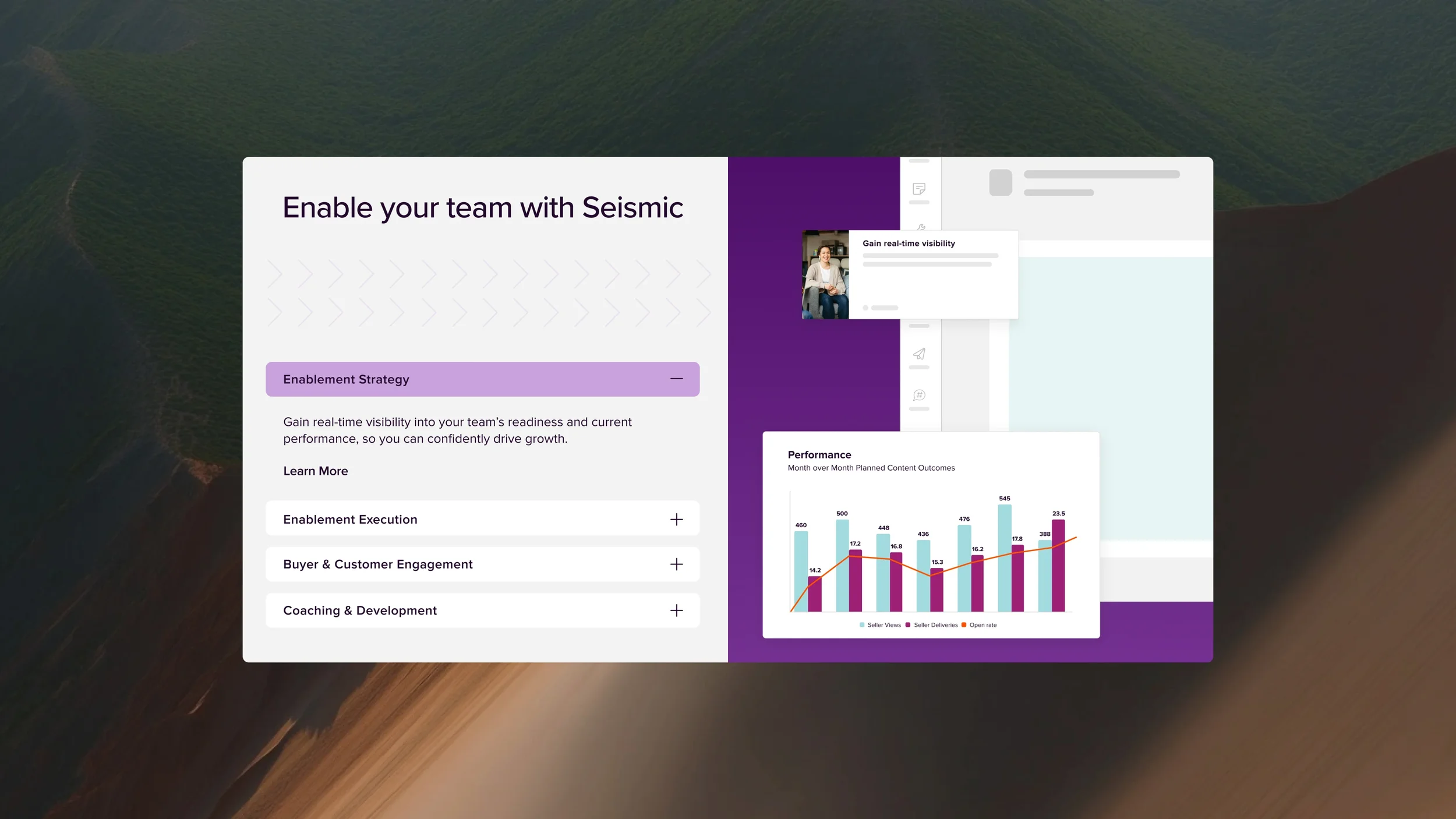 In terms of project impact, in just 12 weeks, we redesigned Seismic’s website, increasing bookings by 56% year-over-year (16% organic), boosting demo requests by 32%, and reducing bounce rate by 26%. We also attained +56% YOY bookings, +32% demo requests within 6 months, and 50+ redesigned pages with consistent visual identity. Our results also included a new search feature to improve discoverability and a Scalable design system for long-term efficiency.